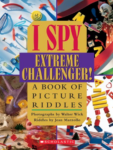After mastering the many I Spy books and then moving on to conquer the tougher-riddled I Spy Gold Challenger, kids begged Jean Marzollo and Walter Wick for an even greater challenge. Naturally, this creative team rose to the occasion, creating the ultimate: Extreme Challenger! Open to any page and find a mind-boggling array of things: "a lobster, a pig, a guitar, / Two skulls, a button, a spring, a car." Wick's exceptional photographic skill renders every object crystal clear, whether on a blank white background or against a backdrop of dusty old bookshelves with antique toys, keys, clocks, and tools. Marzollo's rhymes are straightforward yet clever, matching "an ace" with "a missing bottle's space," and "puffball shoes" with "sad blue ooze." Children will have so much fun "I spying," they won't even realize they're developing their visual discrimination ability, as well as their reading and vocabulary skills! Extra credit riddles at the end of the big, colorful book provide an additional test of readers' nimbleness, and the authors also encourage children to write their own rhyming picture riddles based on the illustrations in the book. Okay, all you eagle-eyes out there, have at it! (Ages 3 to 8) --Emilie Coulter